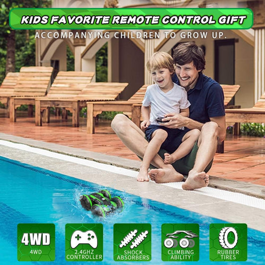 Car Toys for 6-10 Year Old Boys Amphibious Remote Control Car, Stunt Mini Truck RC Car for Kids 2.4 Ghz 4WD Remote Control Boat Waterproof Vehicle All Terrain Christmas Birthday Gifts-Green