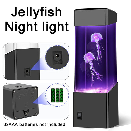 Led Jellyfish Tank Night Light Color Changing Table Lamp Aquarium Electric Mood Lava Lamp for Kids Children Gift Home Room Decor