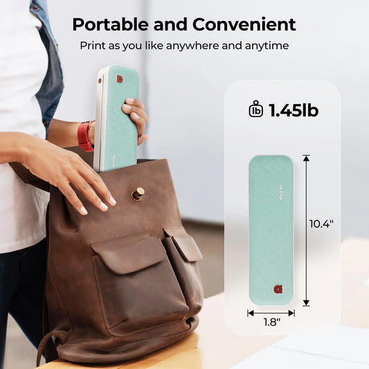 Wireless Printer, Portable Bluetooth Thermal Inkless Printer Compatible with Android and Ios Phone & Laptop, Green